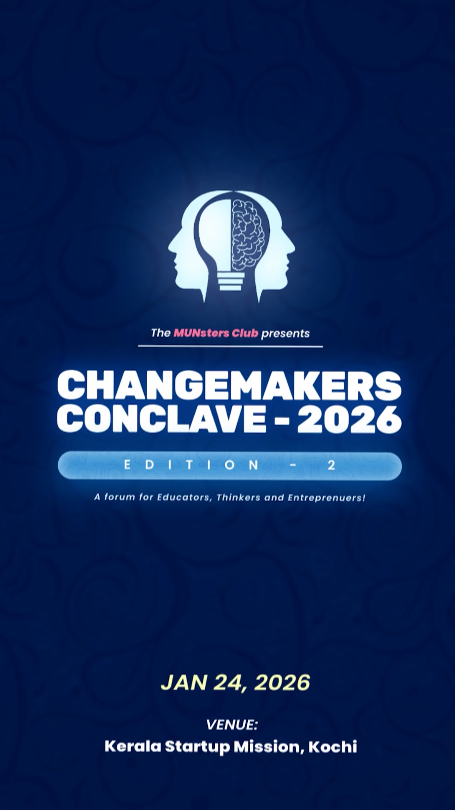 MUNsters Club invites colleges across Kerala and UN Academic Impact (UNAI) member institutions to participate in the Changemakers Conclave 2026 — a simulation-based, dialogue-driven forum designed for educators who believe education must go beyond theory and textbooks..